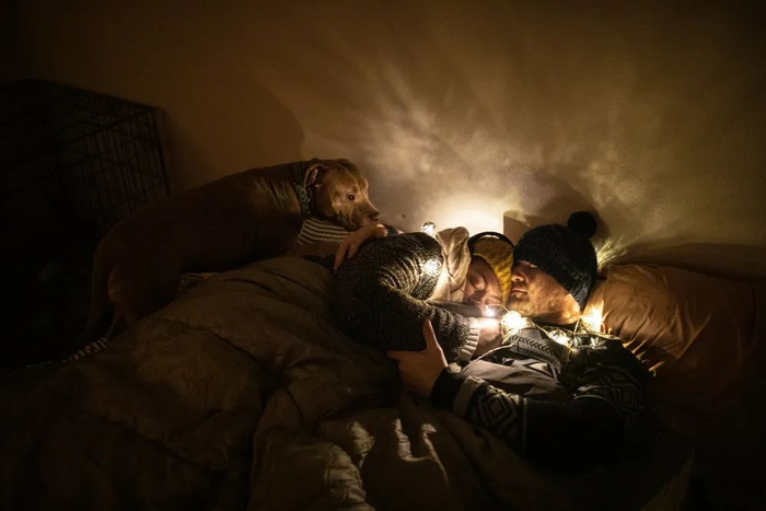 当地时间2021年2月16日,美国得州奥斯汀市,Savannah和Sam Peyton的家已经停电3天。尽管得州大部分地区已恢复供电,但他们的房屋却没有。