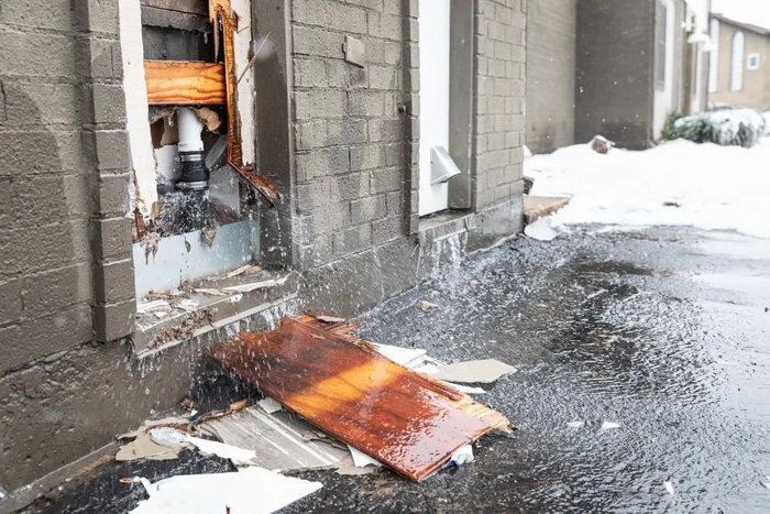 当地时间2021年2月18日,美国得州奥斯汀市,受严寒影响,一处公寓的水管爆裂。
