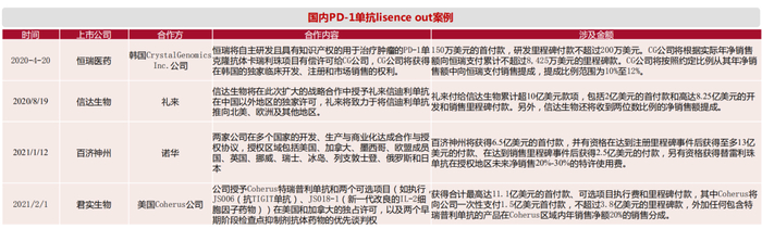 2、四家厂商Lisence out的情况,信达和百济授权方实力强