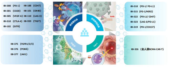 从广度上说,除ADC领域未有布局外,信达生物从小分子、双特异性抗体到细胞疗法均有布局,且其研发布局以及临床进展均处于领先地位。