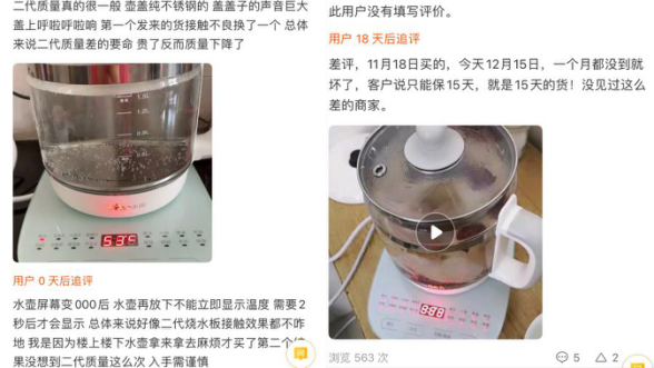 80后的许女士一度是小家电的积极买家,但如今她也受到质量问题困扰,包括产品功能不稳定、噪音大等。