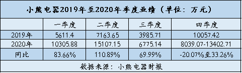 不过,从更细的数据看,去年第四季度小熊电器的业绩已经出现了一定的拐点。