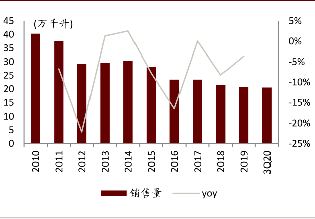 图表: 惠泉啤酒历年销量及YoY