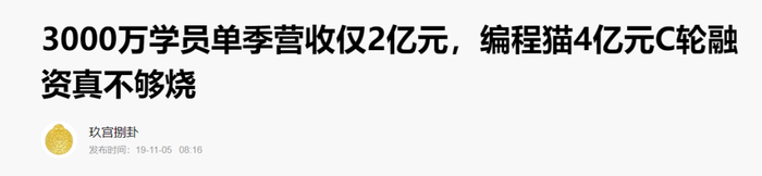 在焦虑中,编程猫不断融资做大想象力,却又在不断讲故事中屡屡碰壁。如今,编程猫面临的竞争挑战越来越大。2019年拿到C轮融资时,就有消息称编程猫的学员数达到3147万人。到了D轮,这项数据似乎仍停留在这一规模,没有进一步的披露。