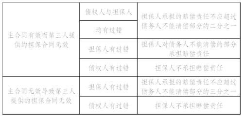 赔偿责任的范围方面,《民法典担保解释》基本维持了担保法司法解释的原则,但是需要注意的是,在主合同有效而担保人有过错造成担保合同无效的情形下,担保人需要承担的赔偿责任从“连带赔偿责任”变为类似于“一般保证”的仅“对债务人不能清偿的部分”进行赔偿。这种变动体现了本次立法平衡债权人和担保人利益的宗旨,但也加大了债权人行使权利的难度。尤其是在保证担保的情况下,一般保证人还享有先诉抗辩权,并且根据《民法典担保解释》第26条的规定,债权人不能单独起诉一般保证人,也不可以单独对一般保证人的财产申请保全。