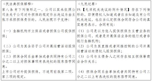 《民法典担保解释》对于未出具担保决议例外情形的规定,较之《九民纪要》更为严格: