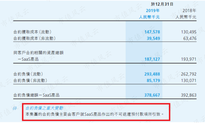 而且微盟集团直接在财报里说了,合约负债主要就是SaaS产品所产生的不可退还预付款。