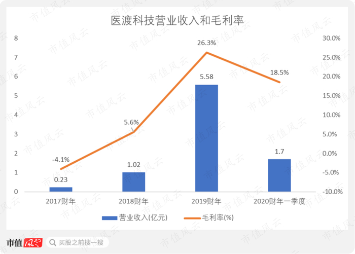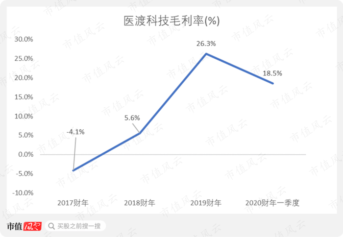 医渡科技的毛利率从2017财年负的4.1%增长至2019财年的26.3%,2020财年一季度的毛利率为18.5%。