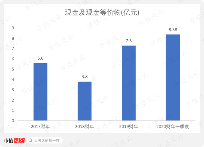截至2020财年一季度末,公司现金及现金等价物达到8.38亿元,而在2017财年至2020财年一季度期间,医渡科技没有一笔有息负债。