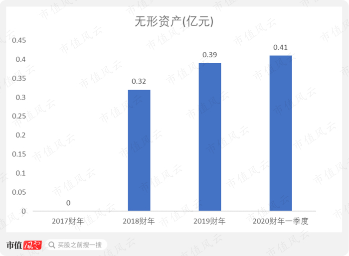 截至2020财年一季度末,医渡科技的无形资产达到0.41亿元。