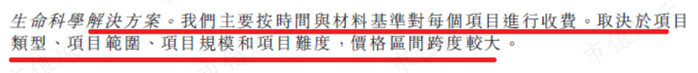 生命科学解决方案,是按照时间与材料基准对每个项目进行收费,连公司自己都承认项目之间的价格区间跨度较大,收费取决于项目类型、项目范围以及项目难度等,这明显是定制化项目才会有的收费模式。