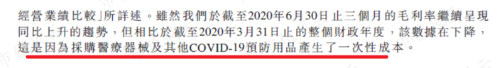 2020财年的一季度,医渡科技的毛利率为18.5%,较2019年财年的毛利率水平有所下降,主要原因是公司采购了医疗器械和其他疫情预防用品,这些一次性的采购成本,直接拖累了同期的毛利率。
