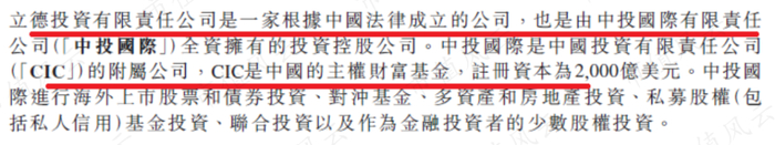 立德投资有限公司持股2.84%,这家公司的母公司正是背景强大的中投公司。众所周知,中投公司是中国的主权财富基金,是中国国家队的实力代表。