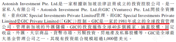 比如持股6.66%的Astonish Investment Pte. Ltd.,其背后是鼎鼎大名的GIC(新加坡政府投资公司)。GIC是全球最大的基金管理公司之一,专门负责管理新加坡的外汇储备,相当于新加坡版的国家队。