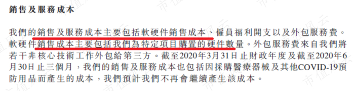 医渡科技的营业成本主要包括软硬件的销售成本、员工薪酬以及外包服务费(公司会将非核心的技术工作外包给第三方)。