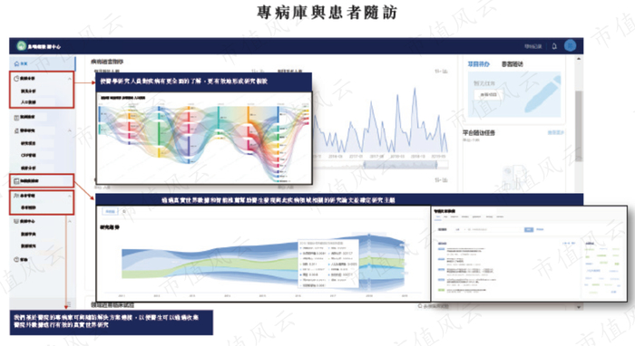下图展示的是医渡科技为一家癌症医院建立的一个鼻咽癌专病库以及患者随访的应用程序。