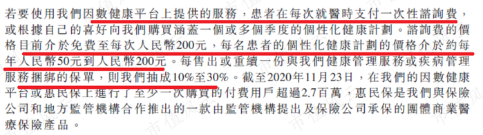 用户可通过医渡科技的因数健康平台,在线咨询医生,并可以直接向公司购买个人健康管理计划、药物以及保险。