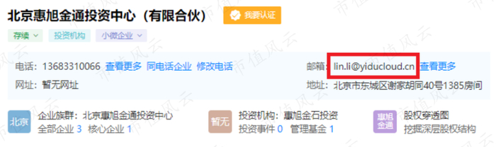 而且北京惠旭金通投资的电子邮箱地址是lin.li@yiducloud.cn,医渡科技的官网地址是www.yiducloud.com.cn,两者后缀都带有“yiducloud”字样,其代表的正是“医渡云”这个名词。