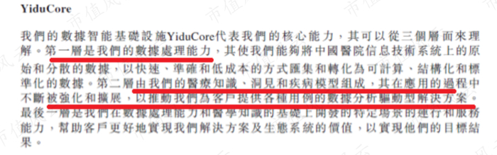 第一个层次是数据处理能力,YiduCore的第一件事就是要搜集国内各个医疗机构信息系统上的原始且分散的数据,汇集之后,再将这些数据转化为可计算、标准化的数据。