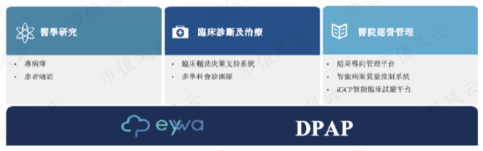 以客户是医院为例,其业务流程是,DPAP/Eywa平台先与医院自有的操作系统相连接并汇集医院的原始数据,接着,DPAP/Eywa平台对这些数据做进一步的结构化处理。
