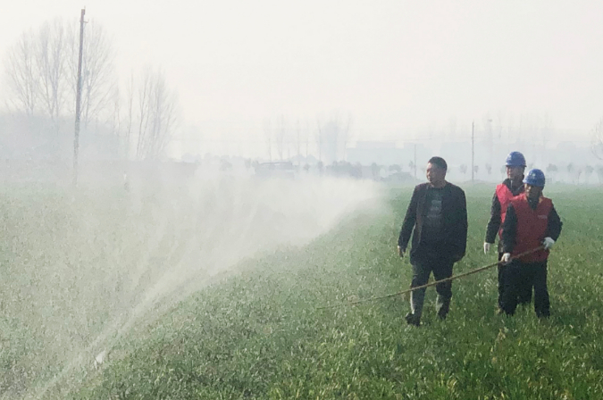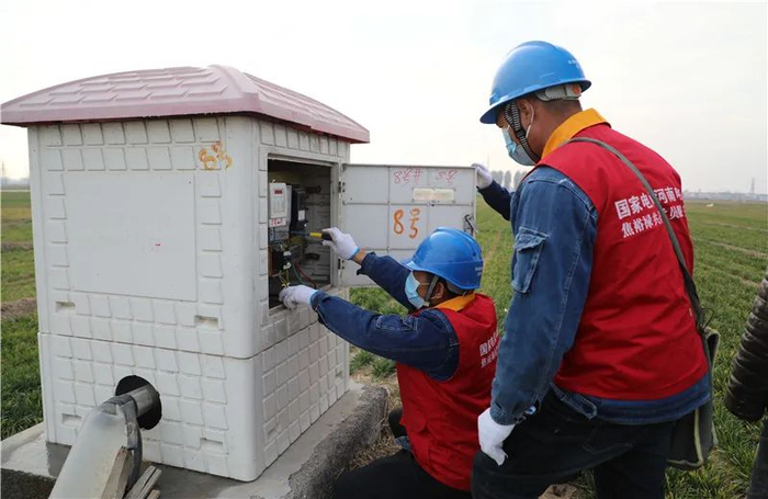 2月18日,河南新乡长垣供电公司员工文怀田、张贺胜为该市方里镇吕庄村农户“春灌”提供电力保障。(何书乾)
