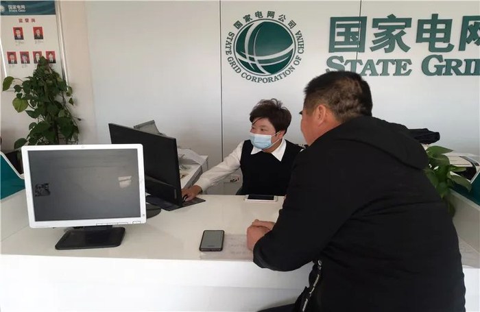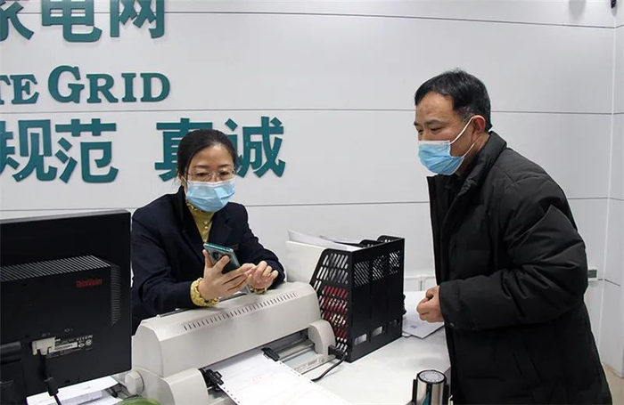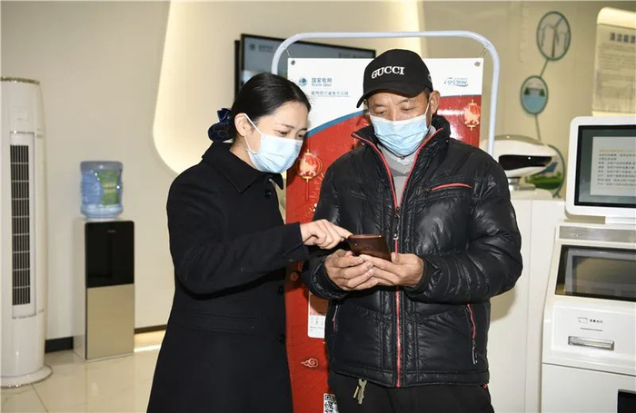 2月19日,山西晋城阳城供电公司员工杨丽丽在凤阳供电所营业厅为客户介绍“网上国网”客户端使用方法。(吴国斌)