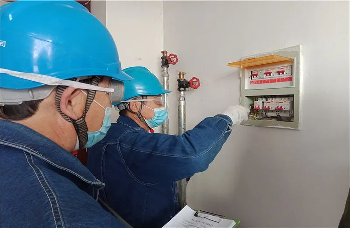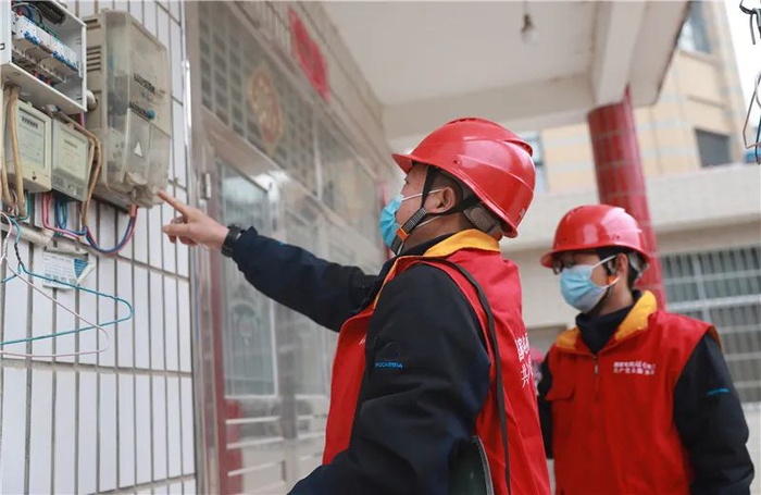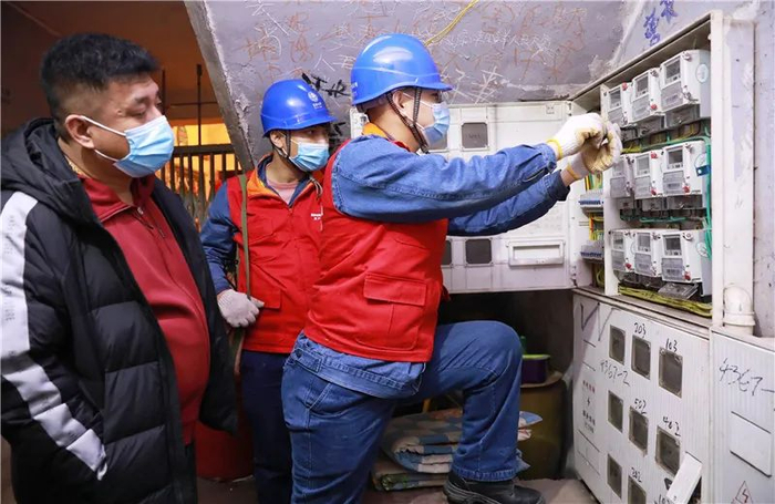 2月18日,吉林辽源供电公司共产党员服务队队员白俊、赵远振在西安区煤城新村小区43号楼3单元为客户检修电表。(许亚民)