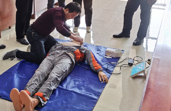 2月18日,江西抚州宜黄供电公司员工在“触电急救”培训活动现场演示急救方法。(蔡文)