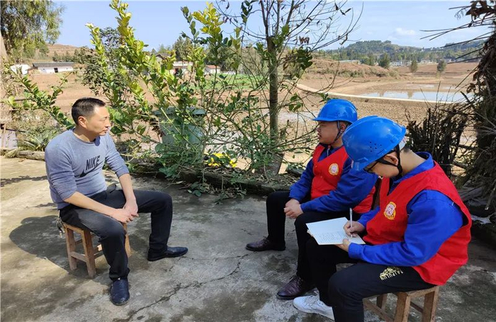 2月17日,四川南充蓬安供电公司巨龙供电所员工张鹏、潘宏伟在巨龙镇4村向返乡创业村民何文平介绍农村用电政策和业扩报装办理流程。(杨姗姗)