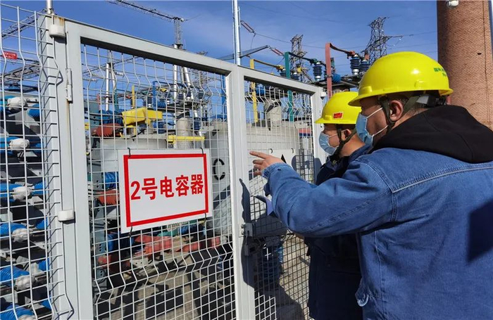 2月18日,陕西渭南供电公司员工在110千伏毕家变电站巡视检查1号主变压器2号电容器。(王磊)