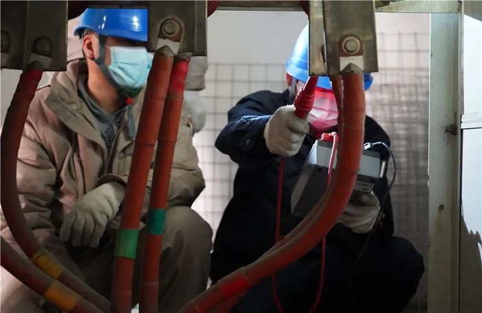 2月18日,天津宁河供电公司员工在天津新华昌设备运输有限公司帮客户检修变压器、开关柜等设备。(王柏懿)
