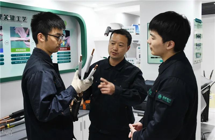 2月18日,福建福州供电公司员工李振翔、郑帅、王平在该公司配电电缆实训室内开展10千伏电缆接头制作技能实训。(陈蒸 陈德钧)