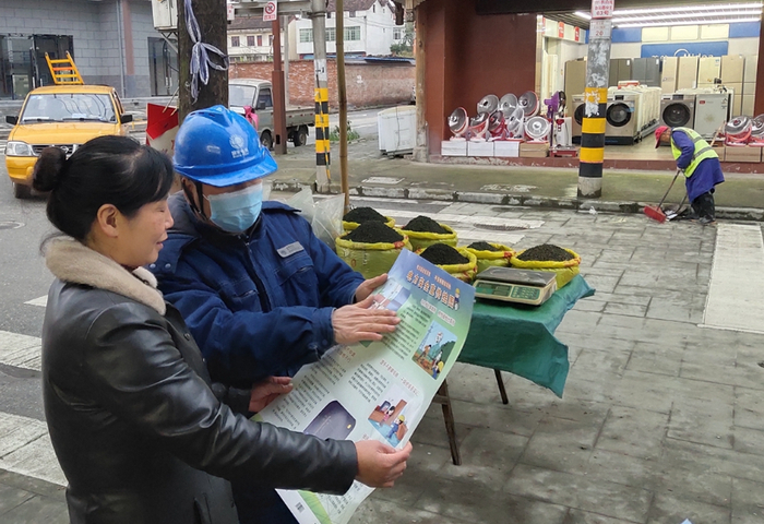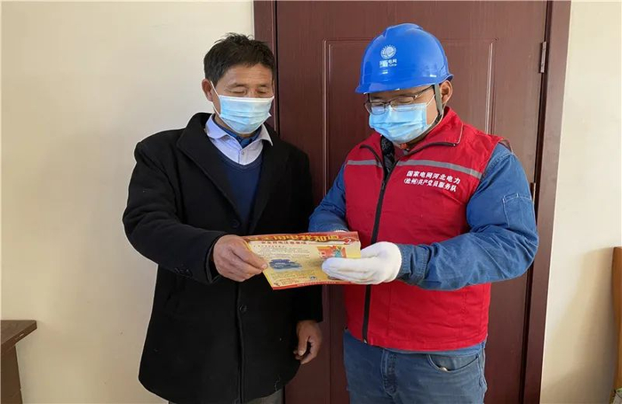 2月18日,陕西汉中供电公司员工肖长明在汉台区武乡镇向客户介绍安全用电知识。(靳伟)
