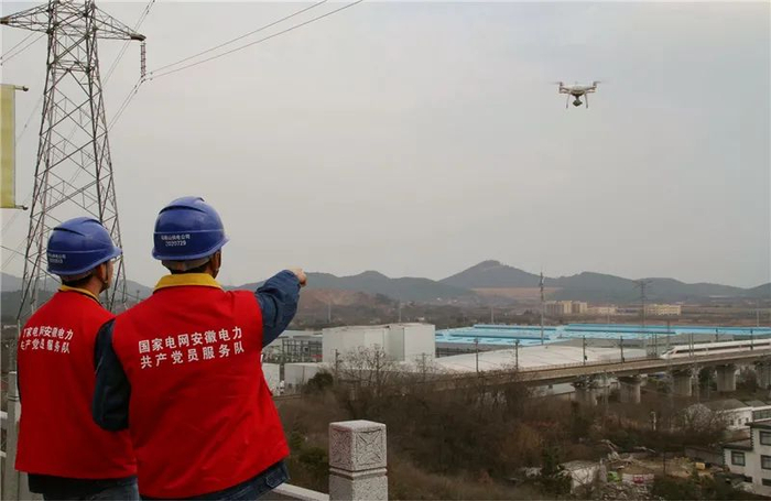 2月18日,安徽马鞍山供电公司员工李明、杨冬强使用无人机巡视宁安高铁马鞍山段明珠牵引站电源线路。(常舜禹)