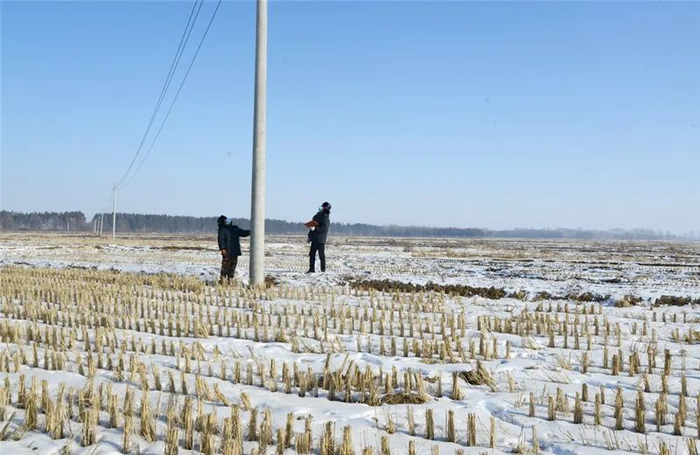 2月19日,黑龙江佳木斯供电公司汤原县农电局员工在胜利乡新丰村巡视10千伏抽水线路。(何佳)