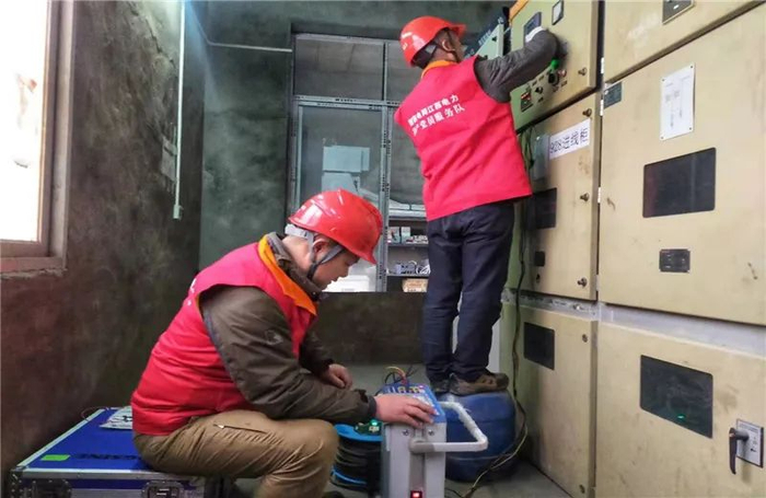 2月18日,江西宜春高安供电公司共产党员服务队队员在华硕集团检查配电设备。(丁宗义)
