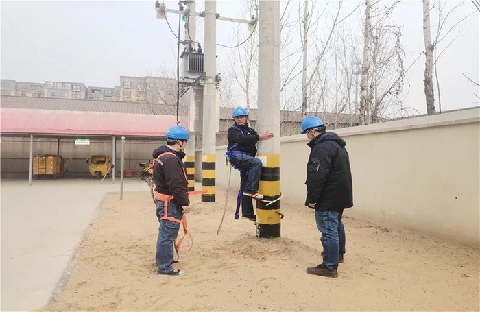 2月19日,河南许昌长葛供电公司员工在大周供电所实训基地参加业务技能培训。(赵娣)