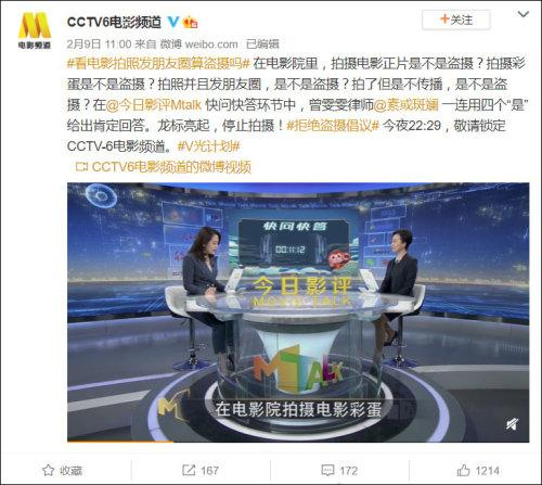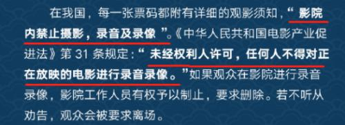 电影频道融媒体中心携手@微博电影 的 倡议书中也提到,影院内是禁止摄影、录音及录像的。