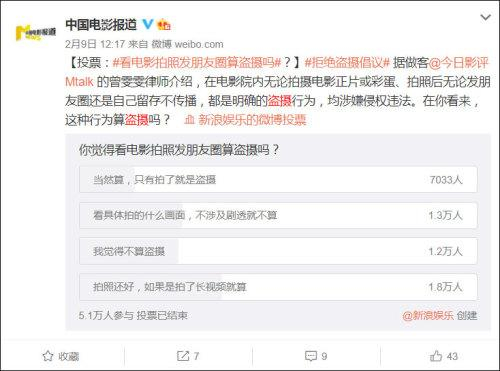 @中国电影频道 9日曾做过一次问卷调查,数据显示,对于盗摄的定义,大多数人是不清楚的。