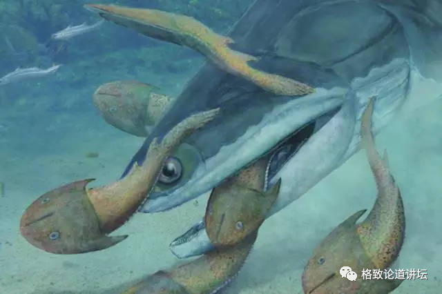 从底栖的一种吃其他小动物甚至食泥的动物,比如非常奇怪的胴甲鱼类盾皮鱼,向超级掠食者的宝座进发。
