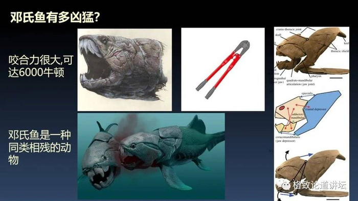 但是你们过去接触到的大部分恐鱼的标本、恐鱼的形象,其实就是邓氏鱼。