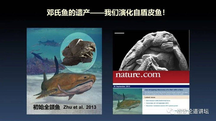首先,所有后面的有颌鱼类都是演化自盾皮鱼类当中的一支,所以我们是盾皮鱼的后代。