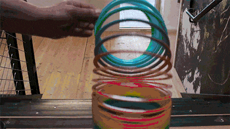 你小时候玩过的彩虹圈,竟会自己下楼梯?