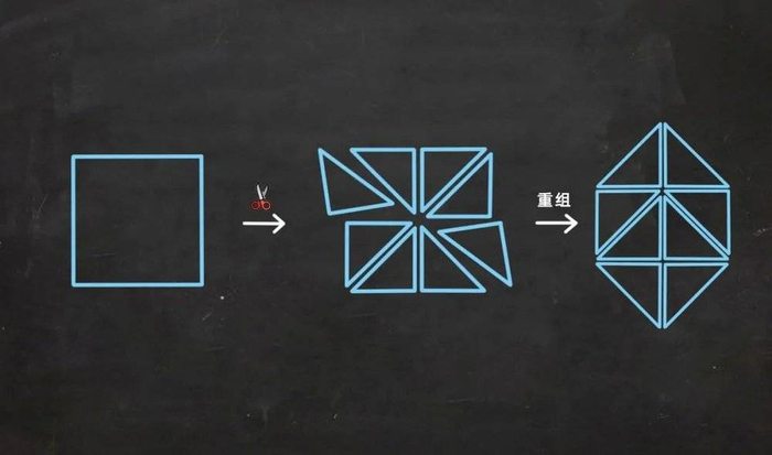 剪刀全等的二维示例:拥有相同面积的二维多边形是剪刀全等的。| 图片参考来源:QuantaMagazine
