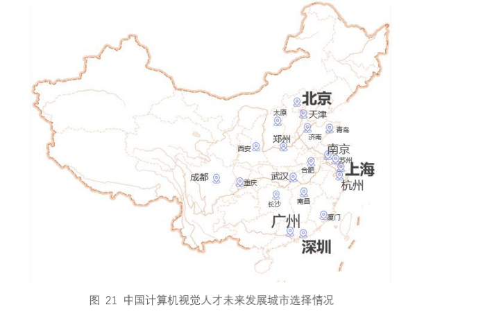 1. 九成计算机视觉人才选择国内一线城市为未来意向发展城市。