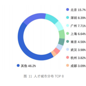 同时,本领域人才的分布与各地经济水平呈现密切相关性:根据我国各地统计局数据,南京、武汉、杭州、成都的 GDP 分别排在 2020 年我国城市 GDP 排行榜的第十名、第九名、第八名与第七名。