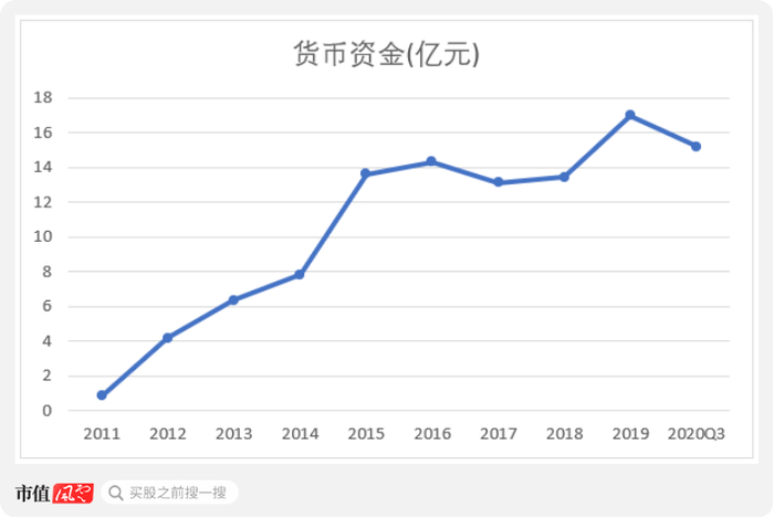 2012年末,全志科技的货币资金为4.19亿元,是2011年末货币资金的4.9倍。从这时候开始,全志科技的货币资金开始陆续增加,并在2015年突破10亿元后常年保持10亿元以上的规模。