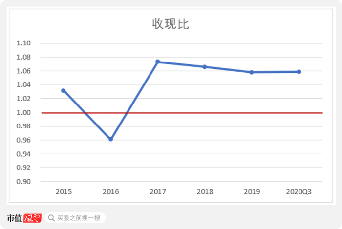 受应收账款回款快影响,除2016年以外,全志科技常年的收现比都大于1,营业收入转为现金的效率也比较高。(注:收现比=销售商品、提供劳务收到的现金/营业收入)