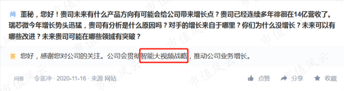 去年12月24日,某卖方机构发布了一篇名为《立足智能芯片,放眼智能车载》的研报,其中预测全志科技2020年预计营业收入为15.71亿元,同比增长7.4%,归母净利润将为2.05亿元。