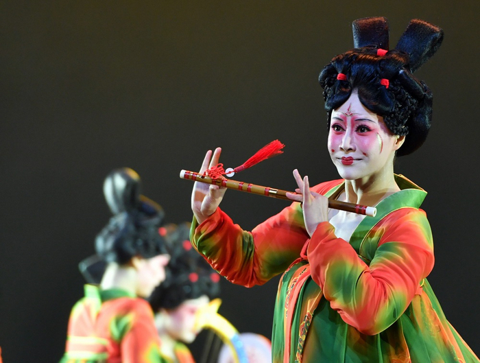 演员在第十二届中国舞蹈“荷花奖”古典舞终评演出上表演《唐宫夜宴》(2020年10月16日摄)。